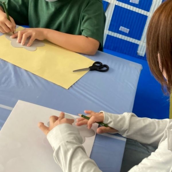 それぞれが選んだ画用紙に型紙で線を描き、ハサミを使う際はとても集中していて、一つ一つ丁寧に、そしてたくさんお花の形を作りました。